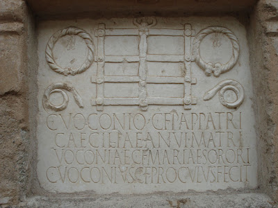 Antes do “cierre para la comida” ainda deu para visitar a área dos “Colombários” que não tinham nada a ver com pombos mas sim com a morte e com a forma como eles a encaravam. Tinham um ritos muito giros e uma manias bem engraçadas que nós aprendemos melhor num centro de interpretação ao ar livre que é simples mas eficiente e do qual nos fazia muita falta um do género no castelo de Marvão. Diz lá que entre muitas coisas, gritavam 3 vezes pelo nome do defunto para ver se o gajo estava mesmo embarcado, lhe davam uma moeda que ele não podia aceitar por razões óbvias (estava morto!) mas que ficava lá à mão de semear. E depois diz também que os queimavam mas depois passaram antes a enterrar embora as duas práticas coexistissem; diz que as áreas funerárias eram fora das muralhas da cidade para não criar mau ambiente; diz que a pessoa depois de morta era quase transformada em divindade, enfim, muita coisa gira!