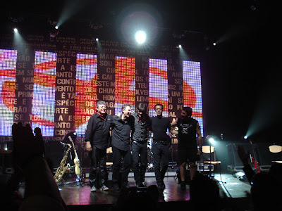 Só para vocês verem a transversalidade da coisa, o meu companheiro de cadeira do lado direito, devia ter para aí uns 6 anos, sabia as músicas quase todas e fartou-se de tocar bateria com as mãos no ar. Eu com 34, ele prái com 5, e a dançarmos os dois lado a lado com o mesmo som. No final, o Kalu ofereceu-lhe as baquetes da bateria e o miúdo passou-se completamente.