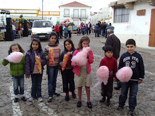 As pequenas rodaram e rodaram ao som de êxitos do momento, ora nas costas do elefante, ora nos carrinhos dos bombeiros e quanto a prendas, a mais pequena encantou-se num cãozinho castanho que só ladrou meia-hora e ao fim de uns apertões já não abanava o rabo. A minha não tirava os olhos de um peluche da barraca dos tiros e lá andei eu armado em Clint Eastwood a ver se o sacava mas e a porcaria da pressão de ar deixava? Eina pá qui coisa mais torta! A russa não me deixava concentrar e eu só tinha 15 rolhas. Descobri-lhe a manha, cumpri o objectivo e deitei as latas todas a baixo mas ela enganou-me e ganhou o jogo na secretaria ao dizer que as latas tinham de cair no chão e não podiam ficar só caídas na prateleira. “Então mas não caíram porque bateram nas orelhas do boneco que está aí ao lado!”, dizia-lhe eu… em vão. Olha, sempre tirámos um peluche médio e parece-me que de tão bonito que era que fez logo esquecer o outro.