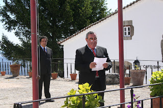 Apesar de toda a gente me dizer o contrário, continuo a pensar que este fantástico par de óculos de sol que comprei ao indiano foram uma aquisição mesmo muito feliz. Vermelhinhos, com luzinhas a brilhar... uma classe! Vão fazer furor no Estádio da Luz. O primeiro par só durou meia hora mas como tinham garantia de um dia, ganhei uns novos. A pós-venda destes gajos é um luxo! Simpatizei com o tipo, o que é que querem? Meteu-se-me na cabeça que era o protagonista do "Quem quer ser bilionário" e prontos. Cá vai disto! As comemorações concelhias que evocaram a memória do 25 de Abril, que não constaram do cartaz geral da romaria por falta de vontade das forças vivas da aldeia, não deixaram de, ainda assim, se realizar e também estiveram engraçadas. A banda chegou a horas, o frio era de rachar, a assistência pouca mas os discursos foram bem quentes e para todos os gostos. Dando continuidade à promessa de dar voz a todas as forças políticas com assento na Assembleia Municipal, o presidente Dr. Carlos Sequeira deu vez ao Dr. Mena Antunes, do PP, que no seu estilo inconfundível zurziu a bom zurzir em tudo o que mexia e deixou antever ter munições para muito mais. O Prof. Garraio, pelo PS, num registo um pouco extenso para a ocasião, falou da história, da revolução e soube defender a dama a nível nacional e concelhio, o que não deixa de ser óbvio atendendo aos sufrágios que se avizinham. Não tão óbvia foi a escolha do Enf. João Bugalhão para manifestar a posição do partido laranja e menos óbvia ainda se tornou quando concretizou o seu discurso, suficientemente cáustico e incisivo para suscitar a dúvida nalguns presentes pela primeira vez na cerimónia, sobre se seria o representante da CDU. Vocês nem imaginam o que custa um homem ter de estar ali a ouvir, a ouvir e a não poder piar… Chega a ser cruel...