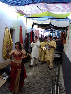 Em termos de animação também me parece que levamos a melhor. Ali estavam como animadores residentes, o grande Eduardo Ramos, mestre do alaúde que bem conheço e consegui colocar no ano passado em Badajoz após convencer a Vereadora Consuelo; e os Gwana Al Baraka com quem já tinha trocado e-mails e com quem ali tive oportunidade de negociar, ficando já apalavrados para Marvão em Outubro a uma preço imbatível. Ambos são valores inquestionáveis mas nós tivemos sempre muito mais diversidade. Ali faltaram as bailarinas de ventre (cá são mais de 15, lá vimos apenas uma), faltaram as serpentes, faltaram as aves de rapina, faltaram os grupos de animação cómica (em 2008 tivemos o grande bobo Pedro Charneca, os ultra-profissionais Animamundy e os hilariantes Compinxas), faltaram os malabaristas de fogo... E nós tivemos essa oferta todos os dias!!!