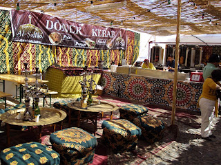 A magnífica porta de entrada do Souk, de contraplacado como a nossa mas muito mais trabalhada e com um tratamento especial a nível da tinta. Aqui há que aprender com quem sabe...