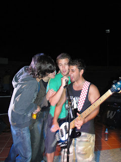 A foto final, derradeira, decisiva e oficial com elementos das duas bandas e demais pessoal amigo. Tudo 5 estrelas! Também apareço eu e o Paulo David com um indesmentível ar de felicidade. Estes miúdos era tudo pessoal do melhor!