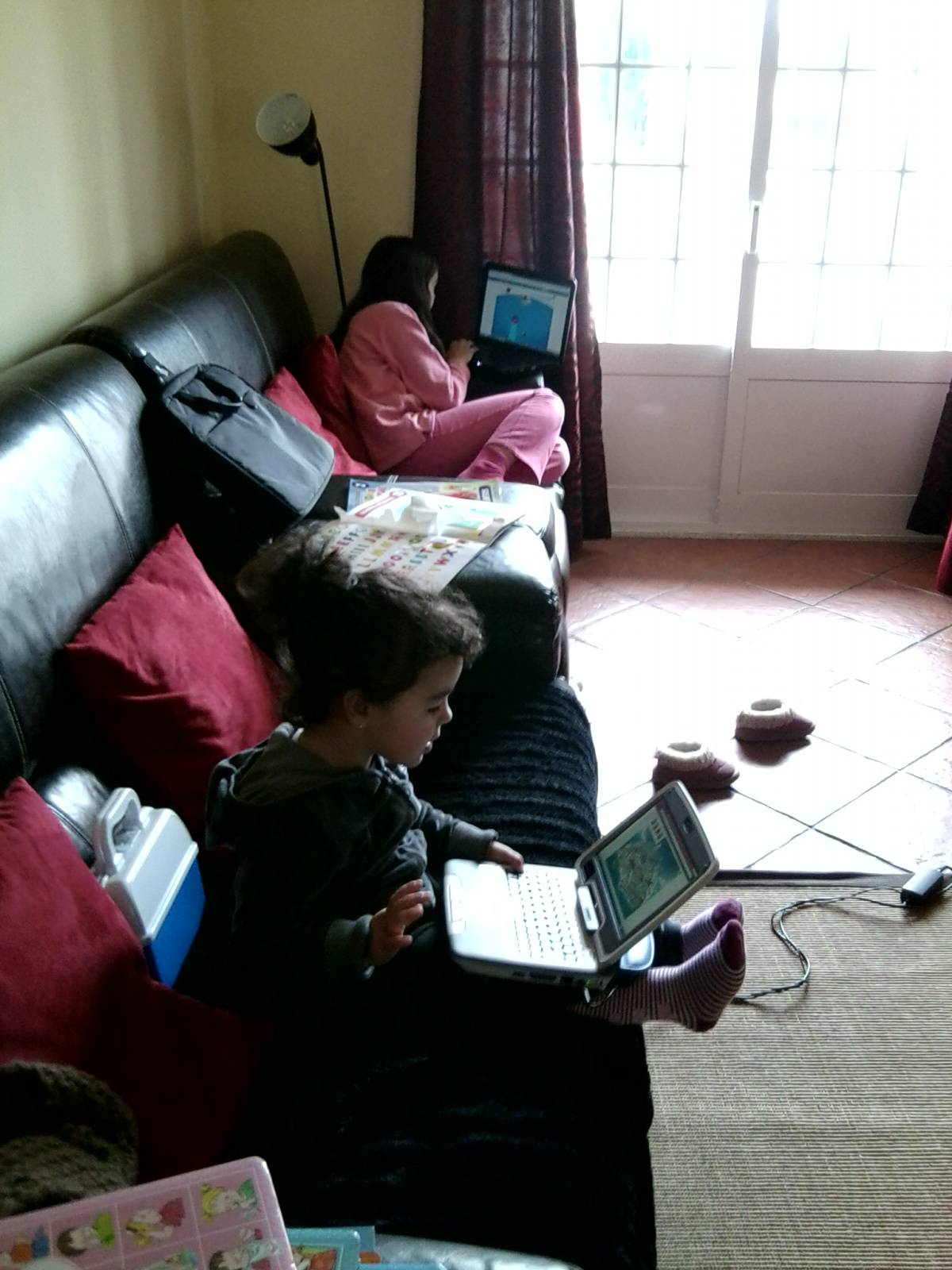 trabalhos manuais pela noite fora e a mais velha a ver televisão. Acordámos