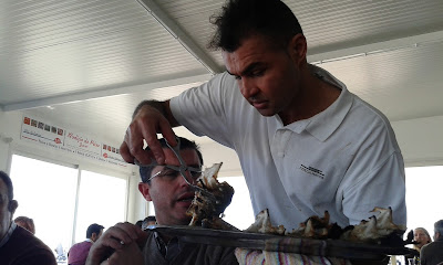 e comêramos uma sandezinha de leitão de se chupar os dedos. Os parvos pedem a